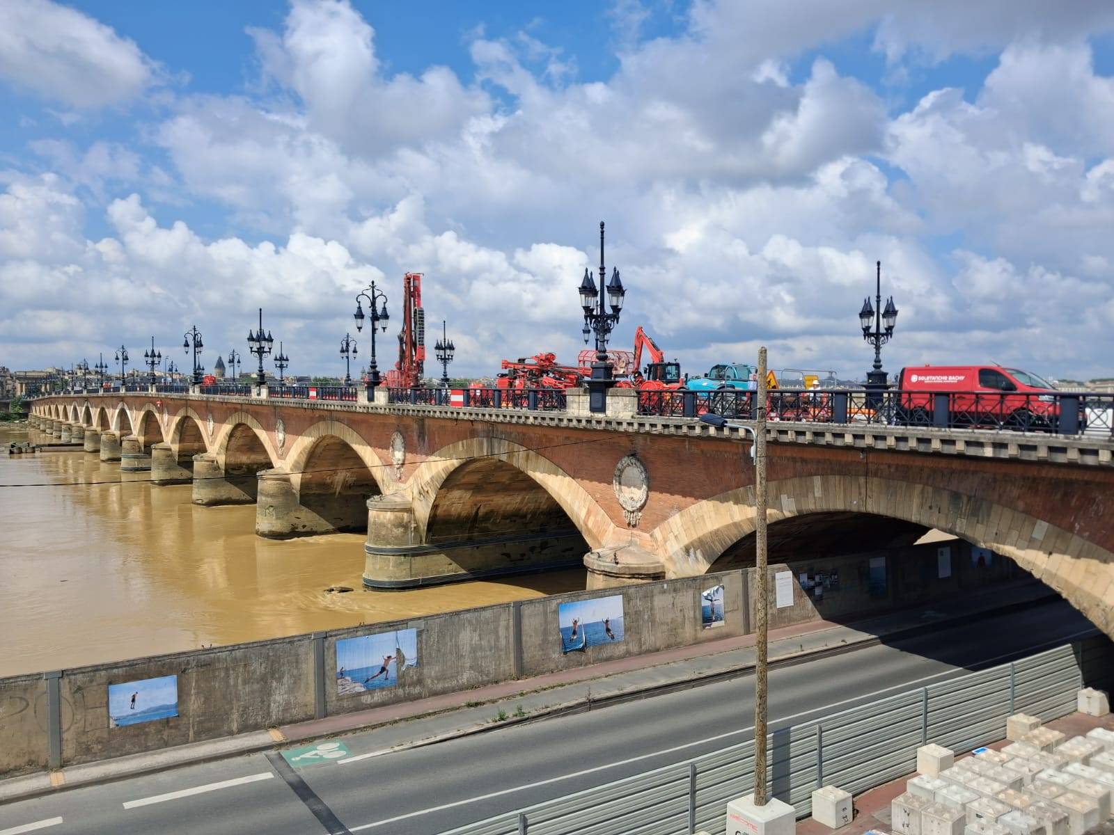 Travaux en cours avec SOLETANCHE sur le Pont de Pierre :